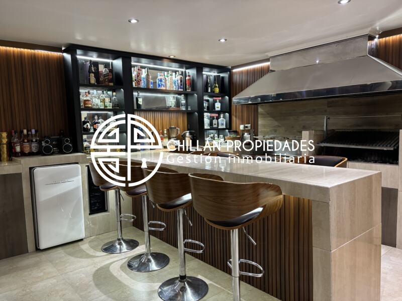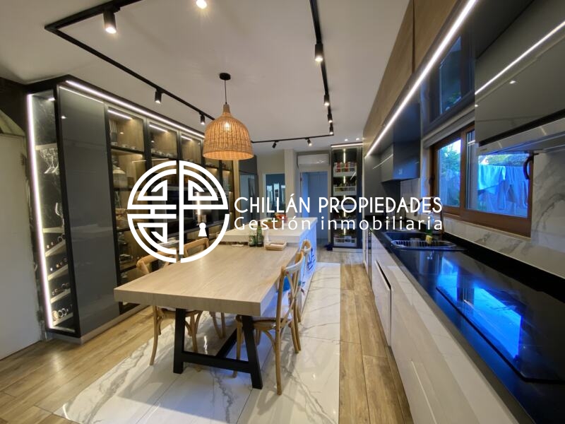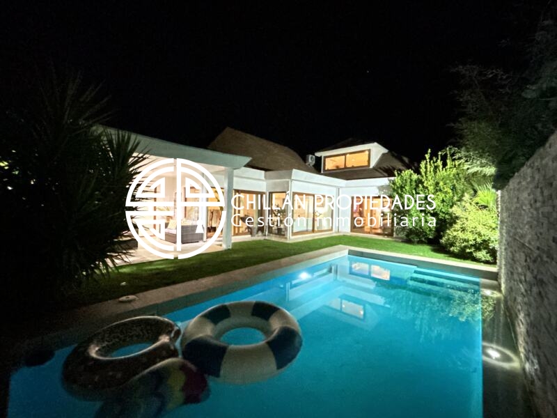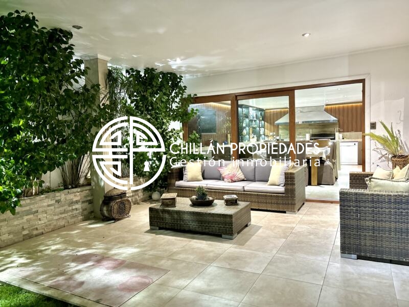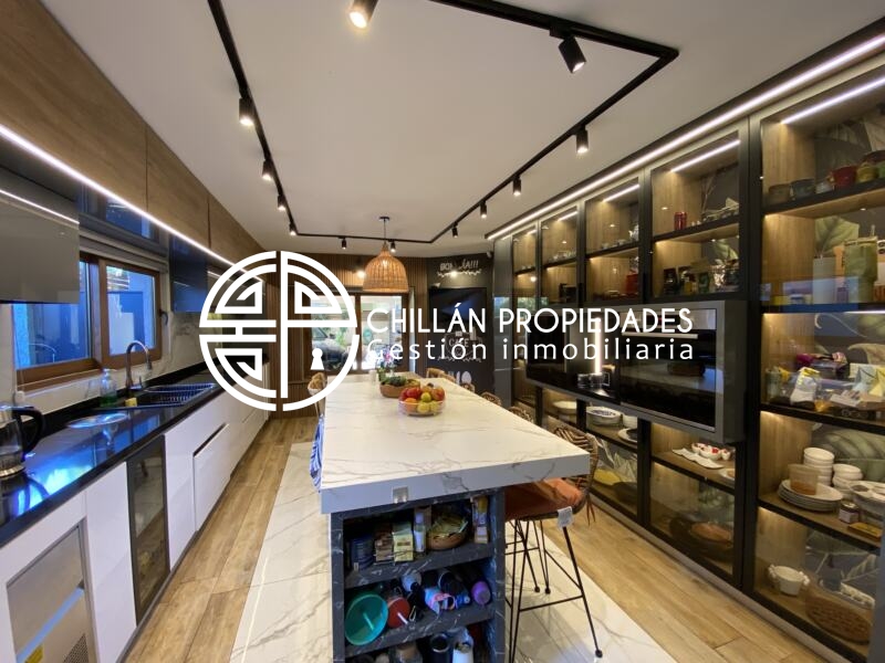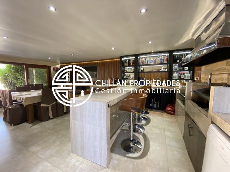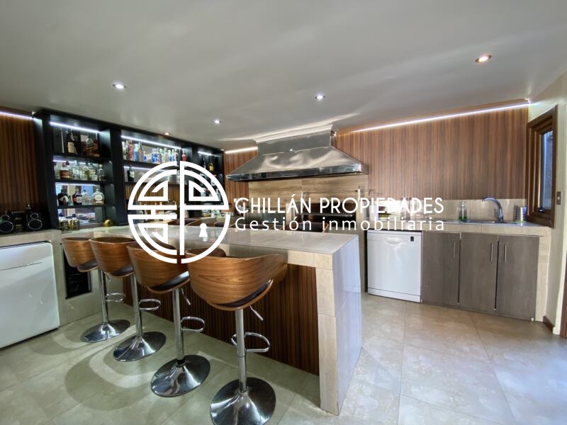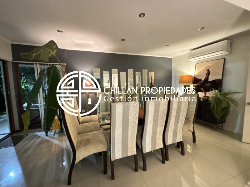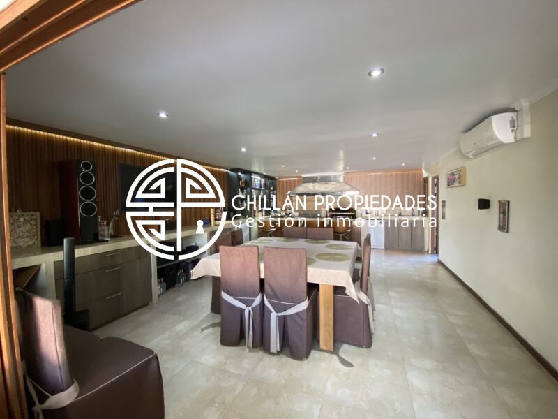 Gran Oportunidad!!! Se vende espectacular casa en el condominio más seguro de Chillán!! 📍Condominio del Real II, hall de entrada, amplio y luminoso living comedor, cocina moderna totalmente ampliada, remodelada y equipada, logia, 5 dormitorios, Dormitorio principal en suite con amplio walking clóset de 25m2, 5 baños, gran Quincho con baño, 7 aire acondicionado inverter, ventanas Termopanel PVC en toda la casa, piscina, riego automático, estacionamiento techado.